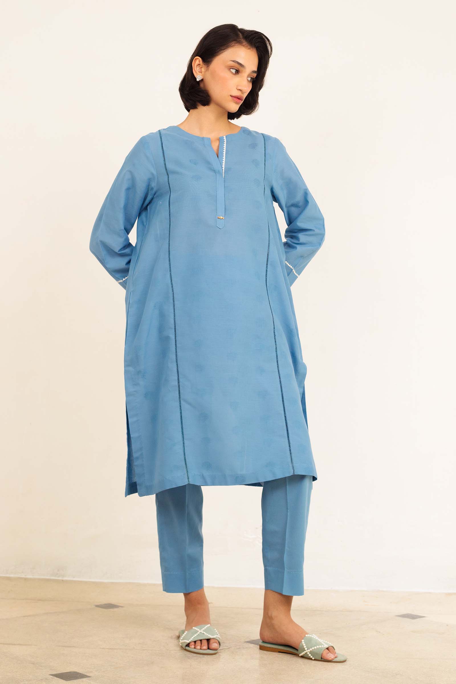 A relaxed-fit kurta with embroidery on sleeves and neckline, ideal for your casual summer gatherings.